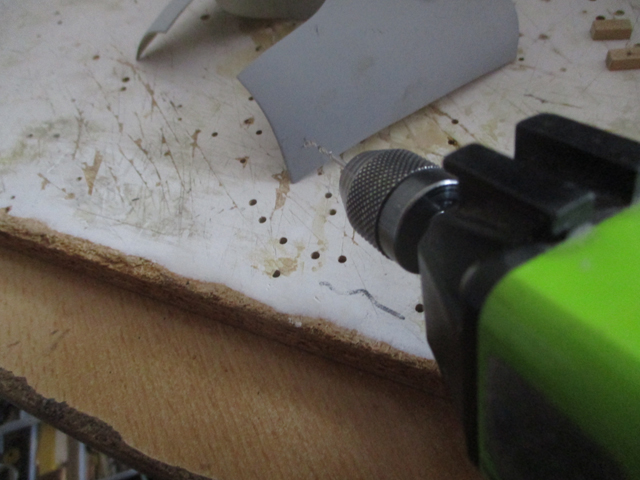 SCALE MODELI / Re: Пројекат М 1723« Last post by presko on November 19, 2025, 10:21:58 PM »Задња веза поклопца мотора за труп је завршена па сам започео израду предње. ![]() За почетак сам обележио позицију отвора за вијке. ![]() ![]() Рекао сам да ћу користити плех вијке, међутим били су то вијци за дрво са упуштеном главом. ![]() Пробушио сам прво отворе на поклопцу на обележеним местима, ... ![]() ... а потом, користећи њега као шаблон, избушио сам и отворе на оплати трупа. ![]() Након тога сам пробушио рупе на дрвеним подметачима у које ђе се завртати вијци. ![]() Ове подметаче сам, са унутрашње стране оплате, залепио петоминутним епокси лепком за труп. ![]() ![]() По сушењу лепка, монтирао сам поклопац и овим је овај посао био готово. ![]() 6