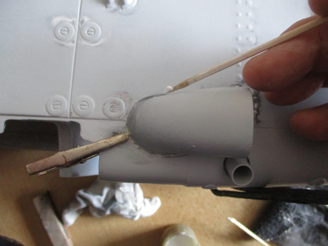 Очистио сам сунђерасту лепљиву траку између трупа и одушке.