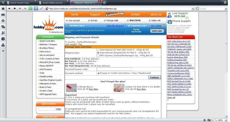 Upravo sam probao, iz zabave, da porucim nesto sa HobbyCity i na moje veliko iznenadjenje pojavila se i opcija za direktno placanje preko http://www.paymentasia.com! (yay) Mislim da smo ovo cekali! :superman: