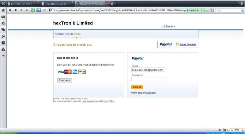 Neznam kako i zasto ali mislim da oni imaju problem.Dakle mislim da nije problem do toga da neko narucuje laznim karticama. Evo zasto - ja sam 28.11 narucio robu u vrednosti 140e sa sajta united hobies i sve to uredno platio preko paypala. Oni su prihvatili uplatu i POSLALI mi tu robu 2.12. E sad u cemu je caka. Ja sam 3.12 proverio izvod na bankovnom racunu i tih 140e je jos uvek stajalo tamo. Da sam bio bezobrazan mogao sam da podignem te pare i da ugasim racun. Oni su pare sa mog racuna skinuli tek 4.12 dakle dva dano posto je paket poleteo iz hong konga.