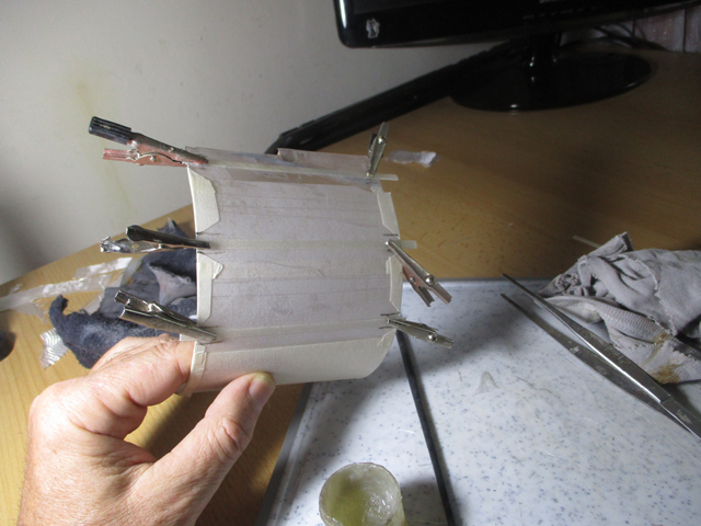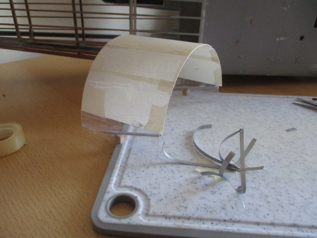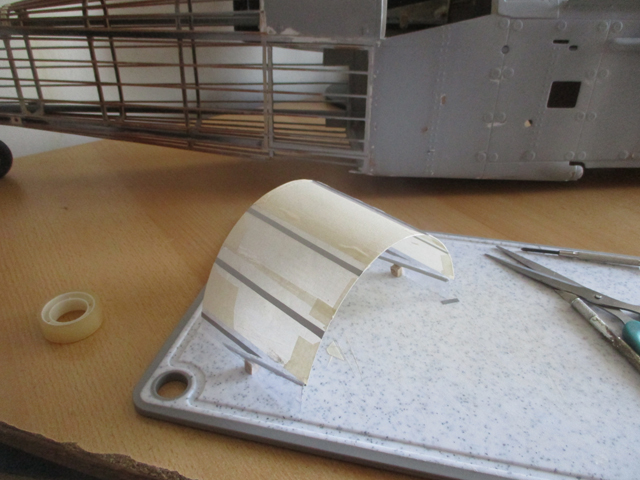 С обзиром са је све већ било припремљено, ово је прошло рутински. Мали проблем је био што је лепљива трака била провидна, па сам морао добро да контролишем како постављам уздужнике. Следећи пут ћу користити или лепљиву фолију у боји или ћу набавити лепљиву траку у боји.